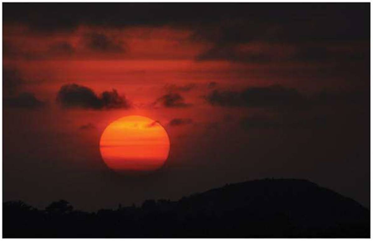 Ashen Sunset against Beeston Bump. Norfolk. The Icelandic Volcanic Ash Clouds hangs in the Norfolk skies giving a firey sunset 16.4.2010
