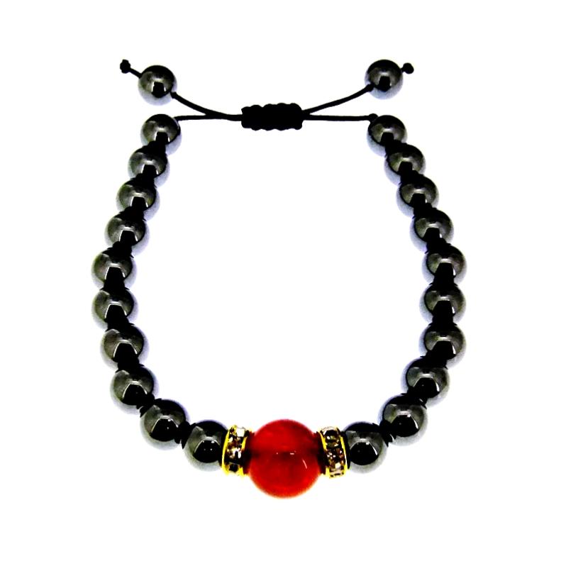 10 pack Drawstring Hematite with Carnelian Power Bead Bracelets. SPR14532BRWH