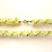 | QUARTZ WITH PERIDOT MULTI CHIP THREAED CLUSTER NECKLACE.