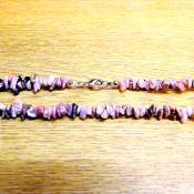 | | CHAROITE GEM CHIP NECKLACE FEATURING A GOLD PLATED LOBSTER STYLE CLASP. 18" LONG. 26g. |