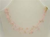 | | ROSE QUARTZ THREADED GEM CHIP NECKLACE. 18" LONG. 14g. FEATURING A GOLD PLATED LOBSTER STYLE CLASP. |