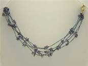 | IOLITE THREADED GEM CHIP NECKLACE. 18" LONG. 12g. FEATURING A GOLD PLATED LOBSTER STYLE CLASP. |