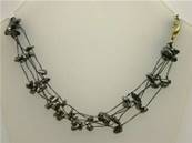 | | HEMATITE THREADED GEM CHIP NECKLACE. 18" LONG. 38g. FEATURING A GOLD PLATED LOBSTER STYLE CLASP. |