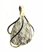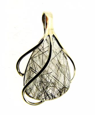 925 SILVER DESIGNER PENDANT FEATURING A LARGE DOME POLISHED TEARDROP CABOCHON IN BLACK TOURMALINE IN QUARTZ.