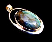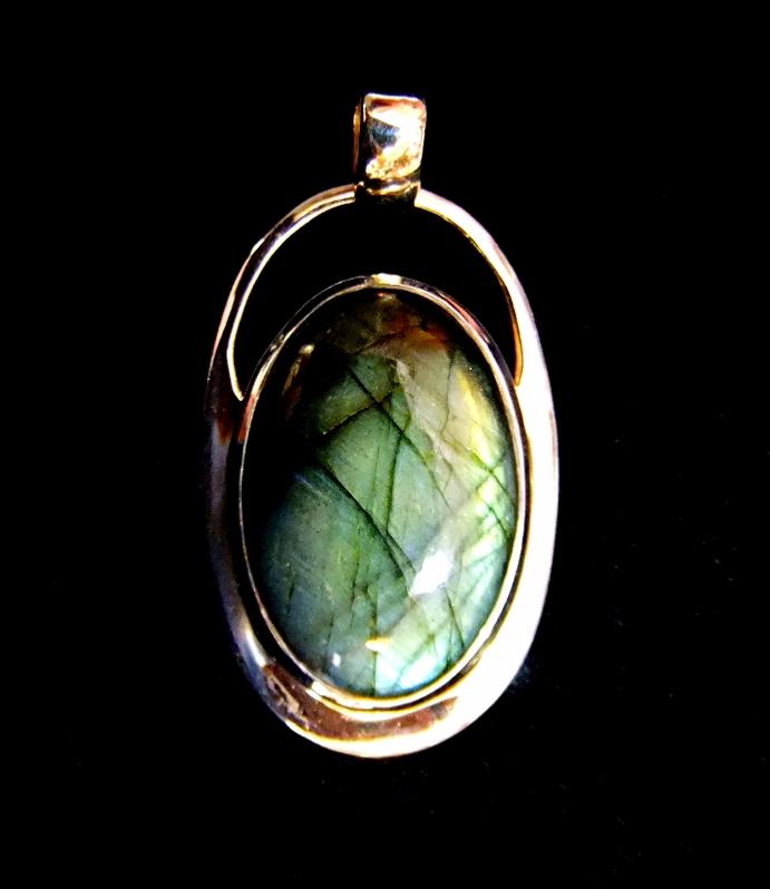 925 SILVER DESIGNER PENDANT FEATURING A LARGE DOME POLISHED OVAL CABOCHON IN LABRADORITE.