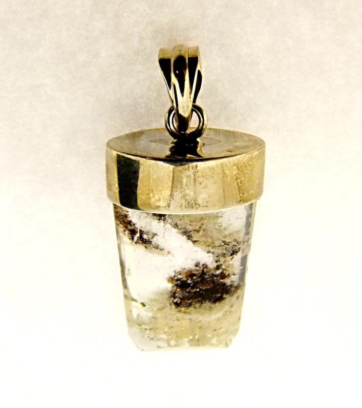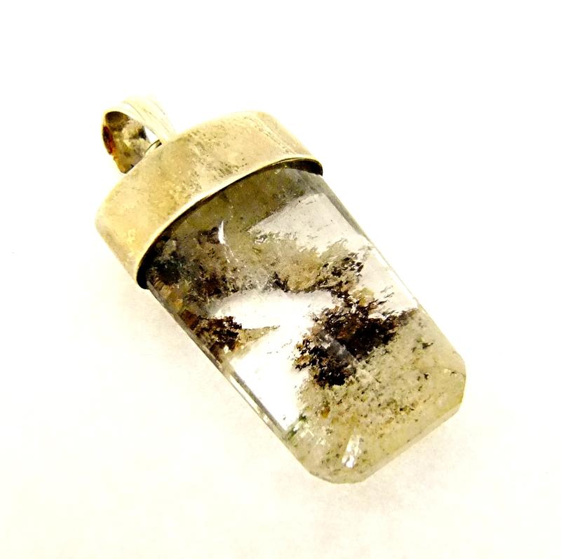 925 SILVER DESIGNER PENDANT FEATURING A POLISHED QUARTZ WITH CHLORITE & LITHIUM CRYSTAL.