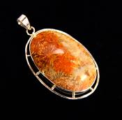 925 SILVER DESIGNER PENDANT FEATURING A LARGE OVAL DOME POLISHED CABOCHON STONE IN FOSSILISED CORAL.