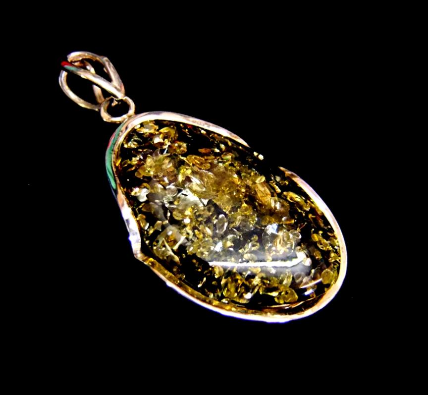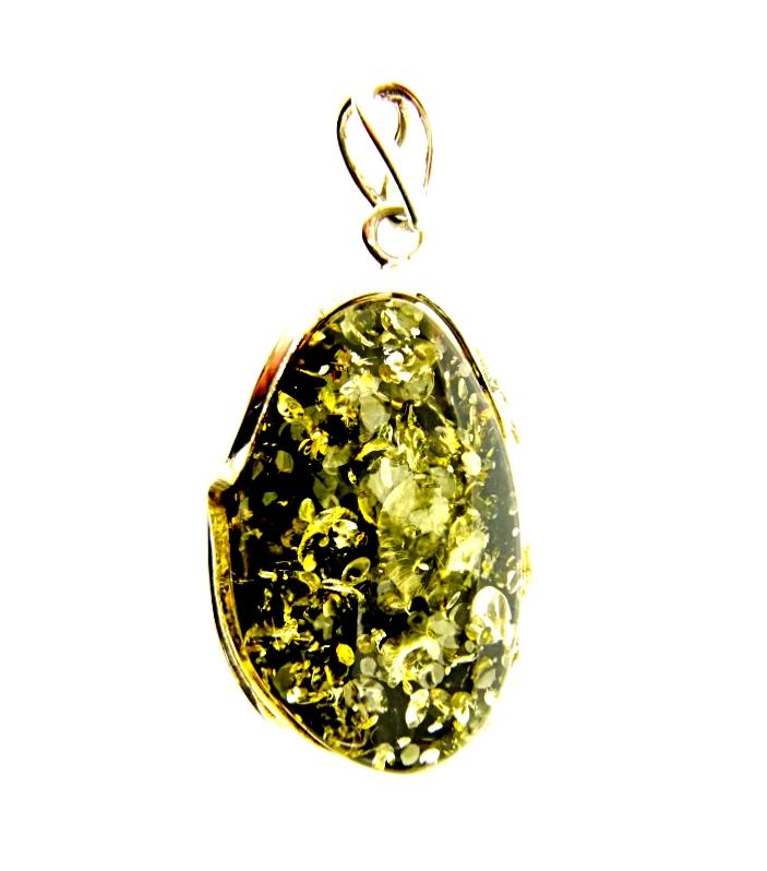 925 SILVER DESIGNER PENDANT FEATURING A SINGLE LARGE DOME POLISHED GREEN AMBER CABOCHON.