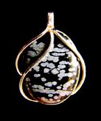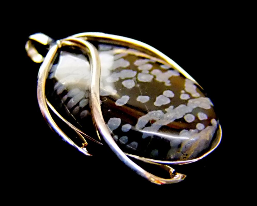 925 SILVER DESIGNER PENDANT FEATURING A SINGLE OVAL SHAPE DOME POLISHED CABOCHON IN SNOWFLAKE OBSIDIAN.
