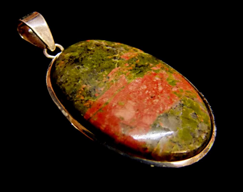 925 SILVER DESIGNER PENDANT FEATURING A SINGLE LARGE OVAL DOME POLISHED CABOCHON IN UNAKITE.
