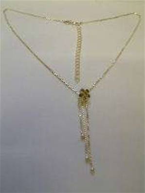 925 SILVER FLOWER PETAL DESIGN PENDANT NECKLACE FEATURING AMETHYST CABS ON AN 18" CHAIN.