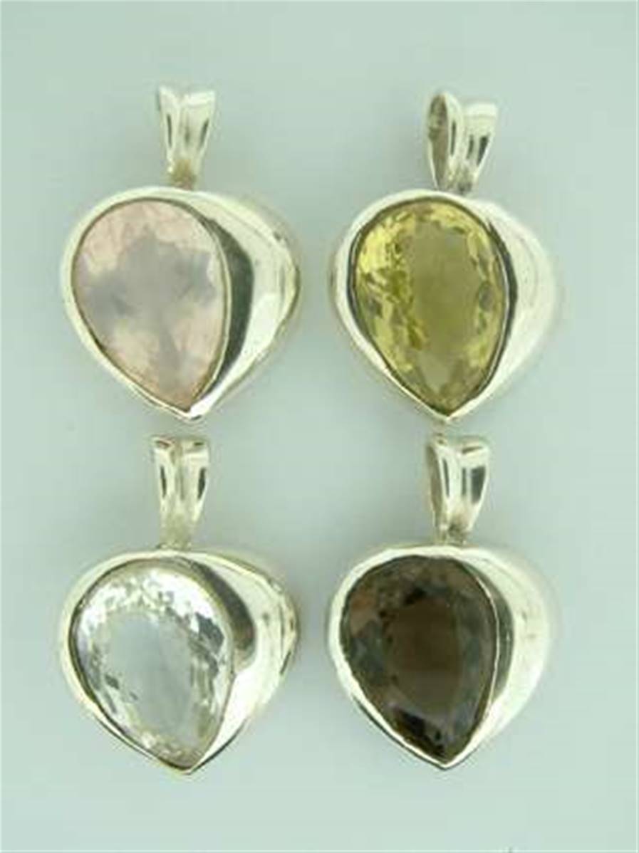 925 SILVER HEART SHAPED PENDANT FEATURING FACETED CABOCHONS IN A CHOISE OF GEMSTONES INCLUDING- LEMON QUARTZ, QUARTZ, ROSE QUARTZ & SMOKEY QUARTZ. (SUPPLIED WITH OPTIONAL 18" 925 SILVER CHAIN IF REQUIRED.)