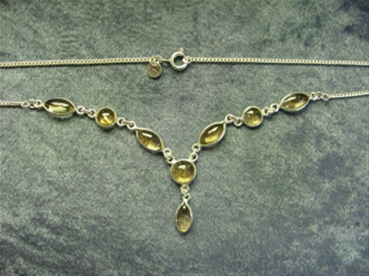 FEATURING FIVE DOME POLISHED CATSEYE SHAPE CABOCHONS & THREE ROUND CABOCHONS IN CITRINE ON A 16" CHAIN.