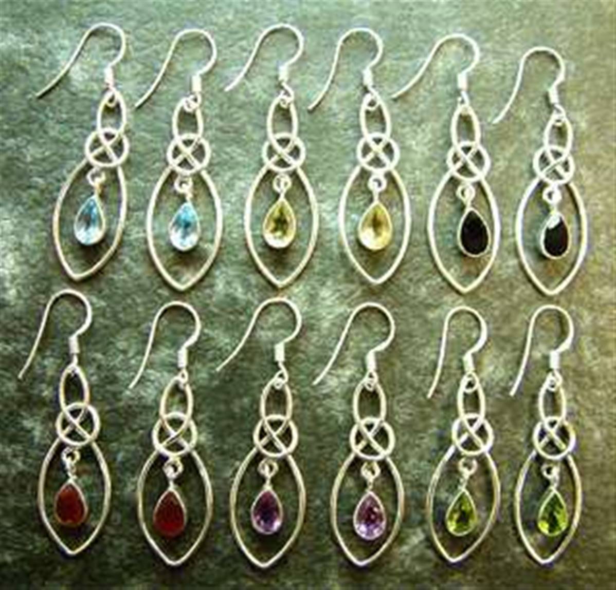 925 SILVER PENDANT STYLE EARRINGS FEATURING FACETED TEARDROP SHAPE CABOCHONS IN AMETHYST, CARNELIAN, BLACK ONYX, BLUE TOPAZ, PERIDOT & LEMON TOPAZ.