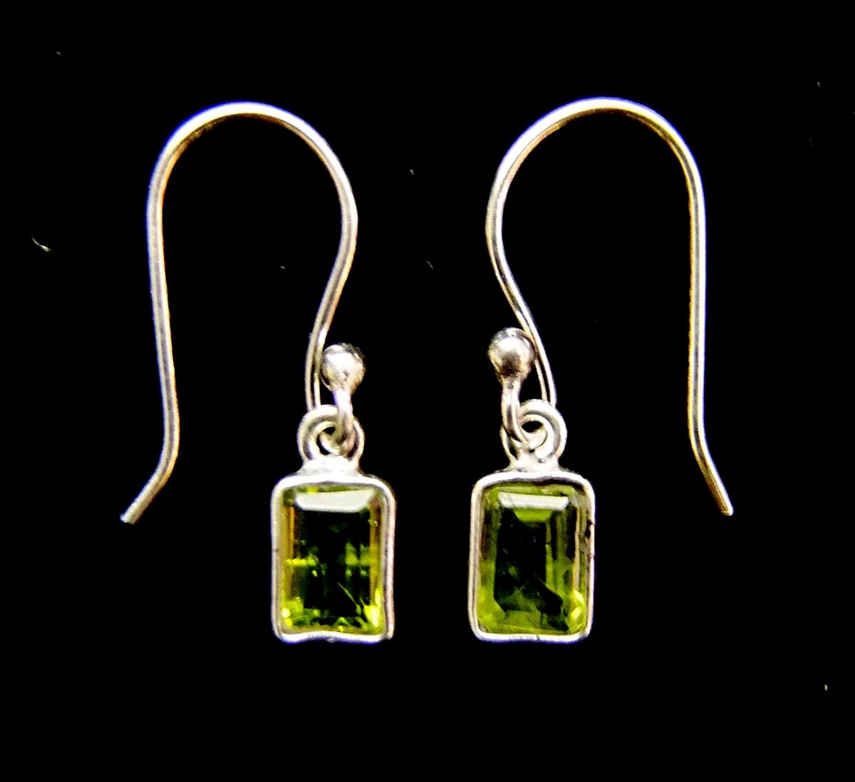 925 SILVER PENDANT STYLE EARRINGS FEATURING SQUARE FACETED CABOCHONS IN SMOKEY QUARTZ, ROSE QUARTZ, PERIDOT, CITRINE, ONYX OR LABRADORITE.