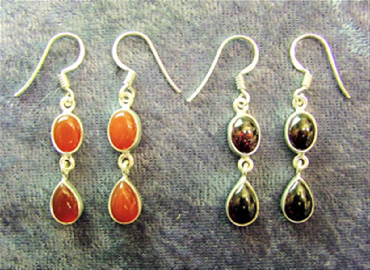 THESE EARRINGS FEATURE TEAR DROP & OVAL CUT CABOCHONS IN EITHER GARNET OR CARNELIAN.