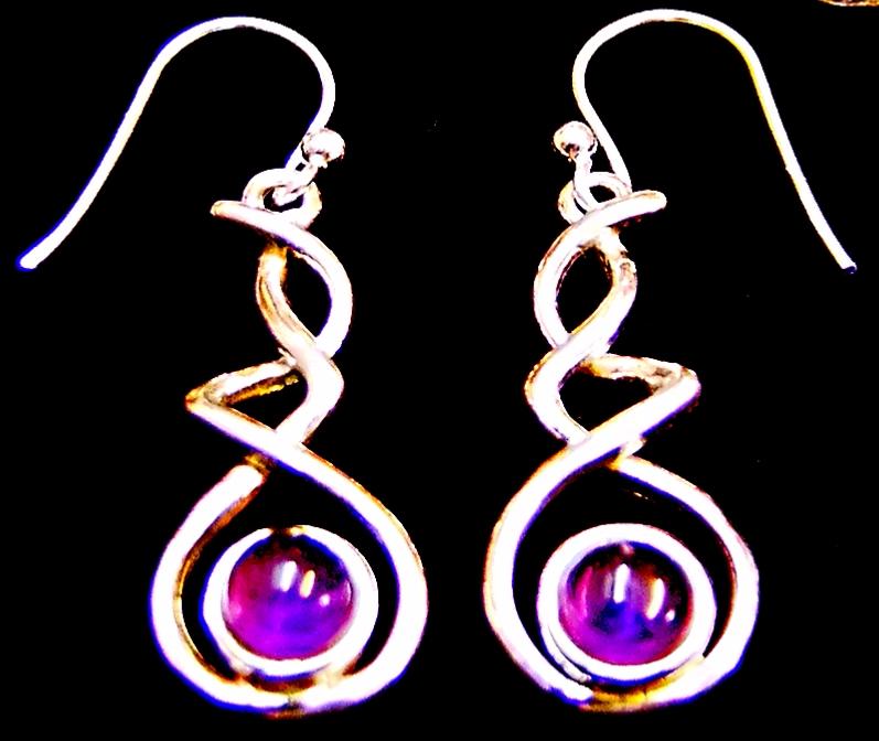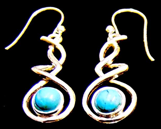 925 SILVER PENDANT STYLE EARRINGS FEATURING A DOME POLISHED ROUND CABOCHON IN A CHOICE OF TURQUOISE, RAINBOW MOONSTONE  OR AMETHYST.