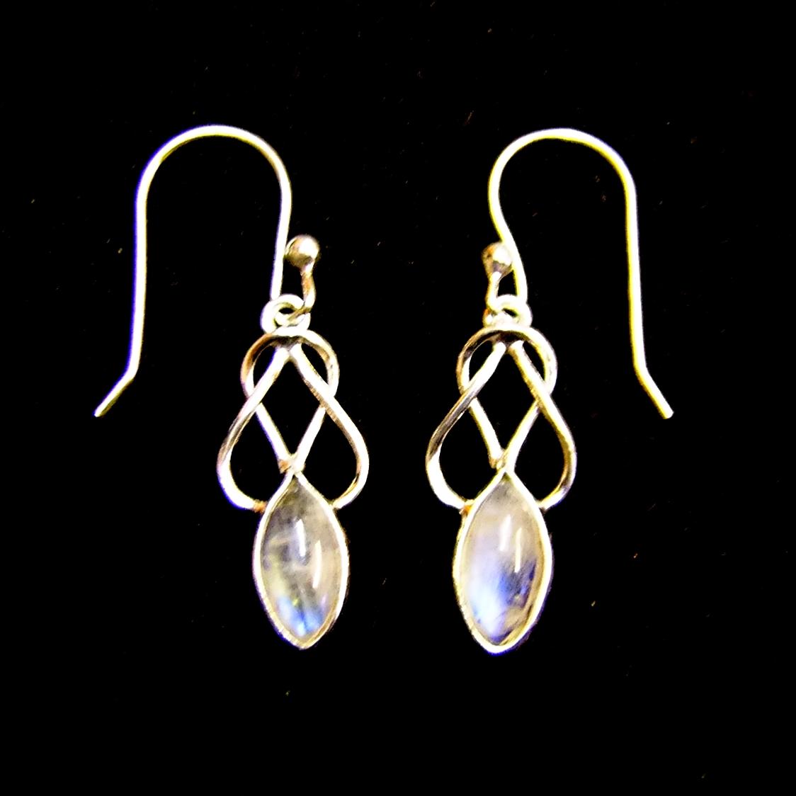 925 Silver Pendant Style Earrings with Rainbow Moonstone Gemstones.   22464M