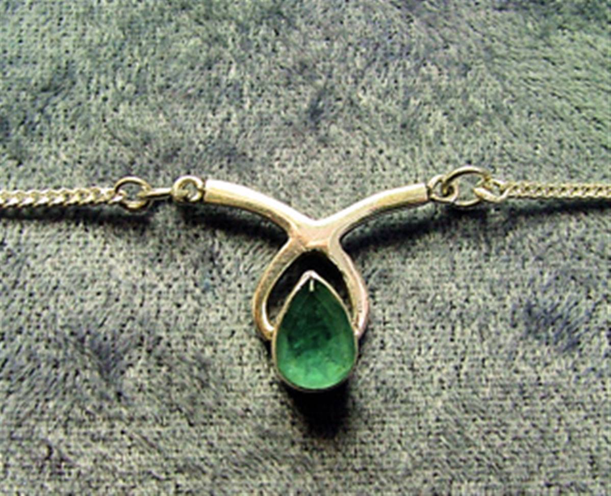 FEATURING A SINGLE FACETED TEARDROP SHAPE CABOCHON IN APATITE ON A 16" CHAIN.