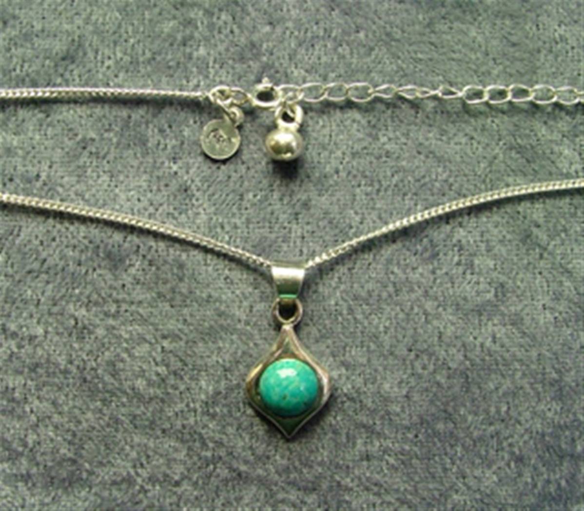 FEATURING A SINGLE ROUND DOME POLISHED CABOCHON IN TURQUOISE ON A 16" CHAIN.