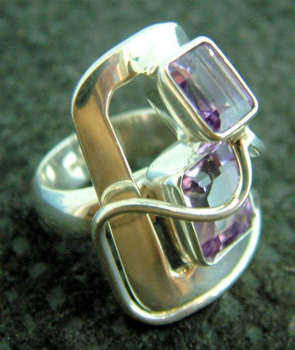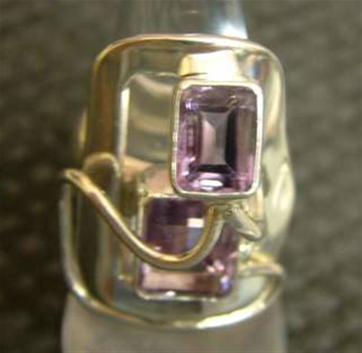 FEATURES SQUARE CUT FACETED CABOCHONS IN AMETHYST.