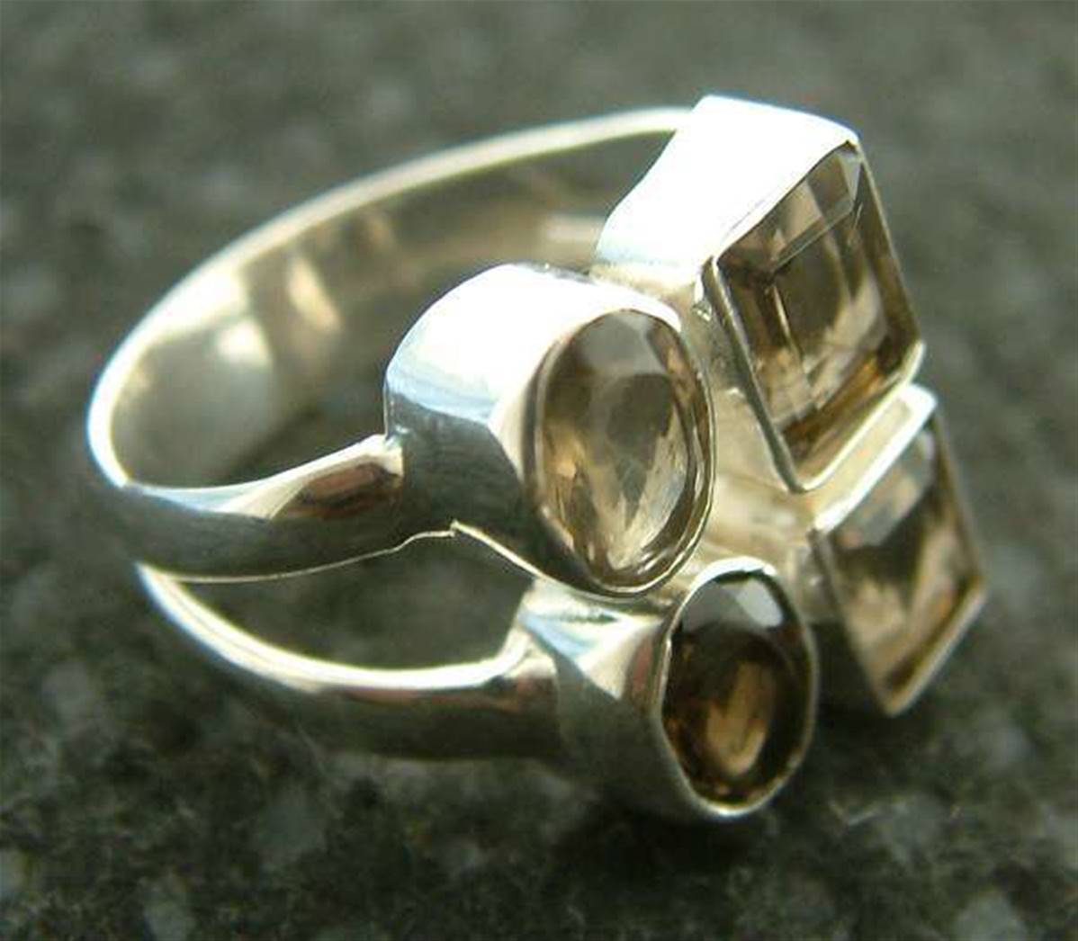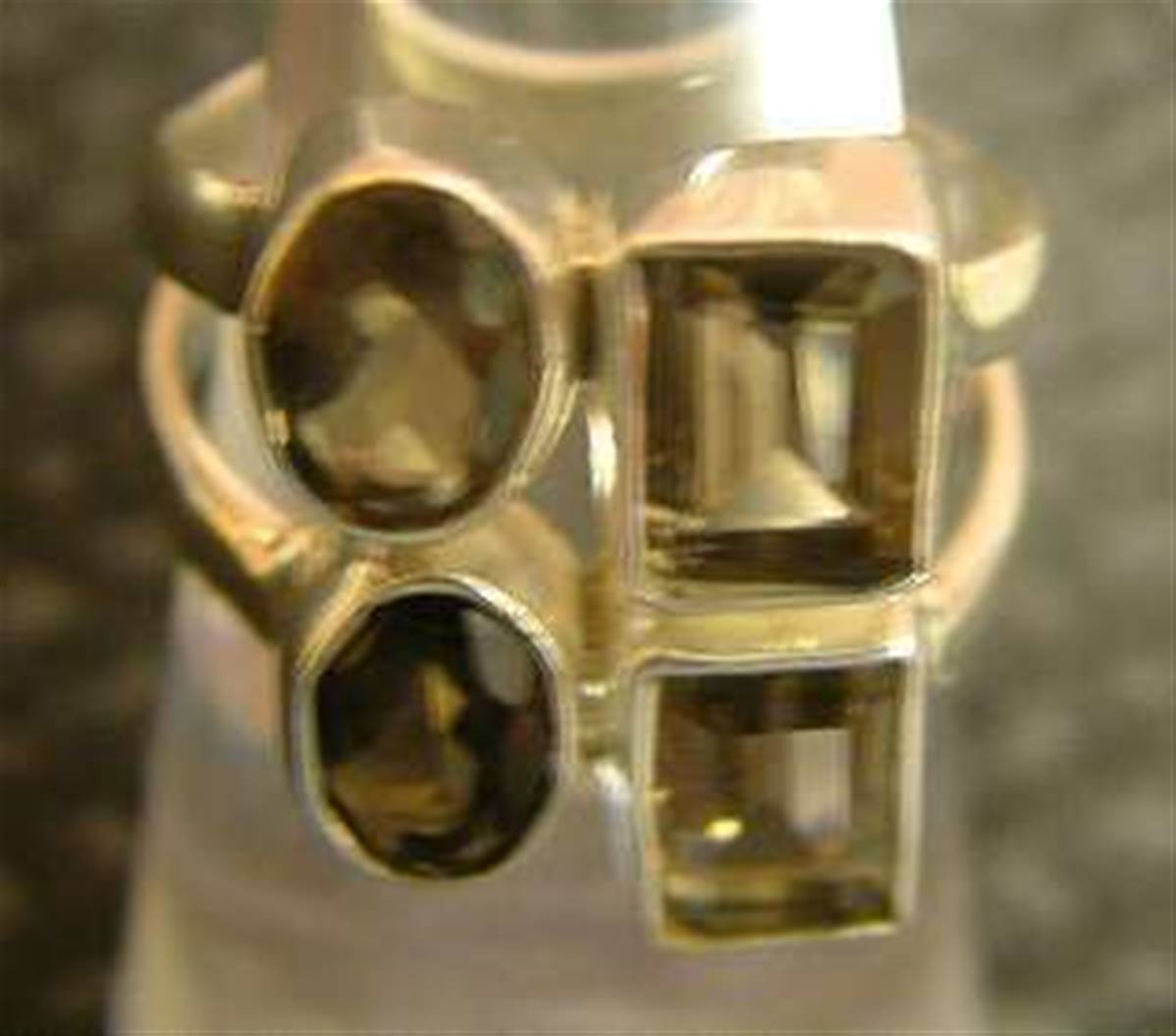 FEATURES SQUARE & OVAL CUT FACETED CABOCHONS IN SMOKEY QUARTZ.