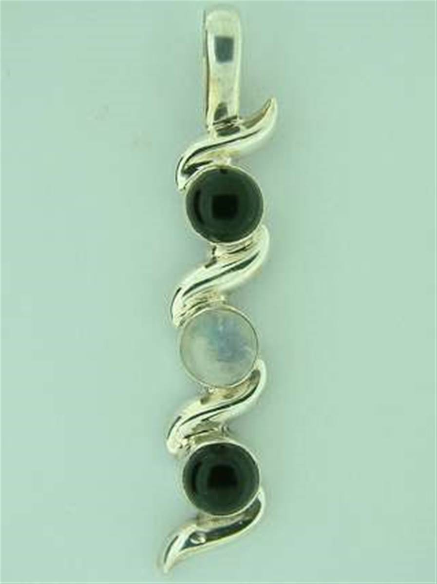 925 SILVER 'SNAKE' STYLE PENDANT. SET WITH ONYX & MOONSTONE. SPR920PEND