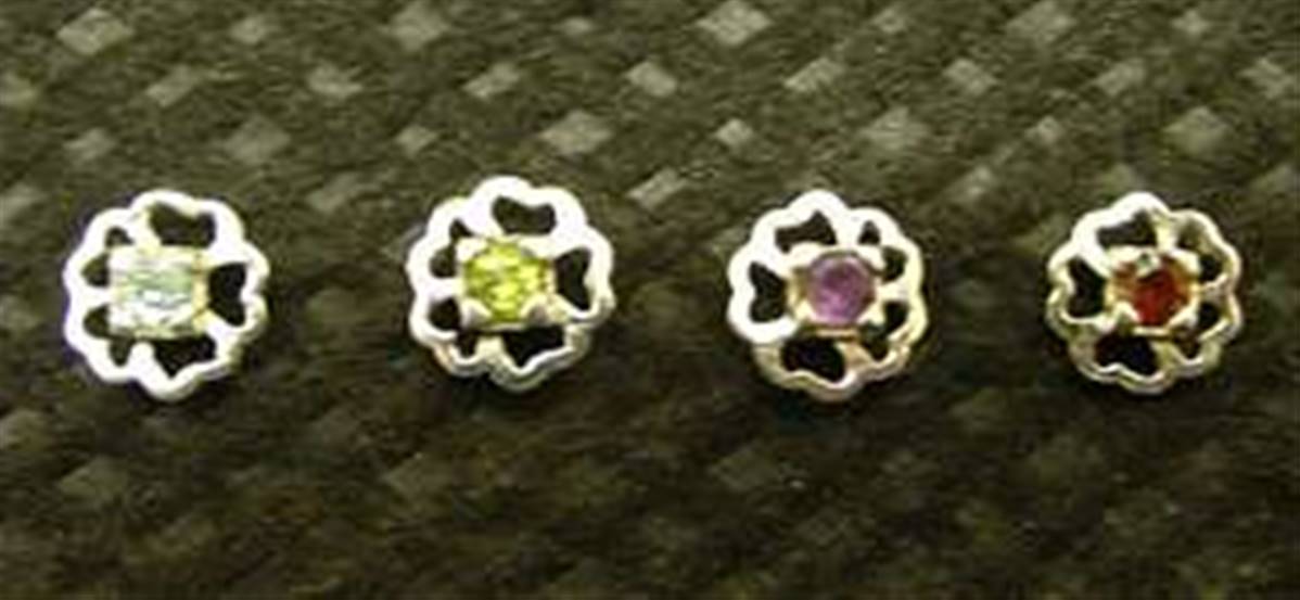 IN FLOWER DESIGN FEATURING FACETED CABOCHONS AVAILABLE IN GARNET ONLY.