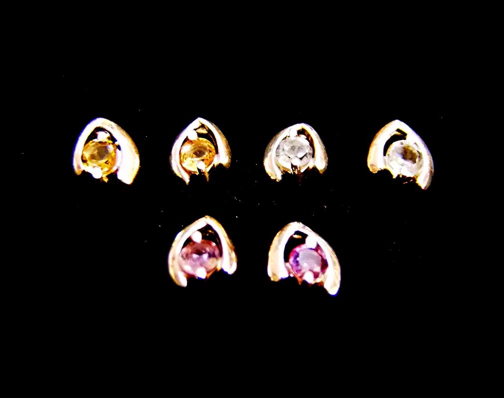 925 SILVER STUD EARRINGS FEATURING SMALL ROUND FACETTED CABOCHONS IN AMETHYST, BLUE TOPAZ OR CITRINE.