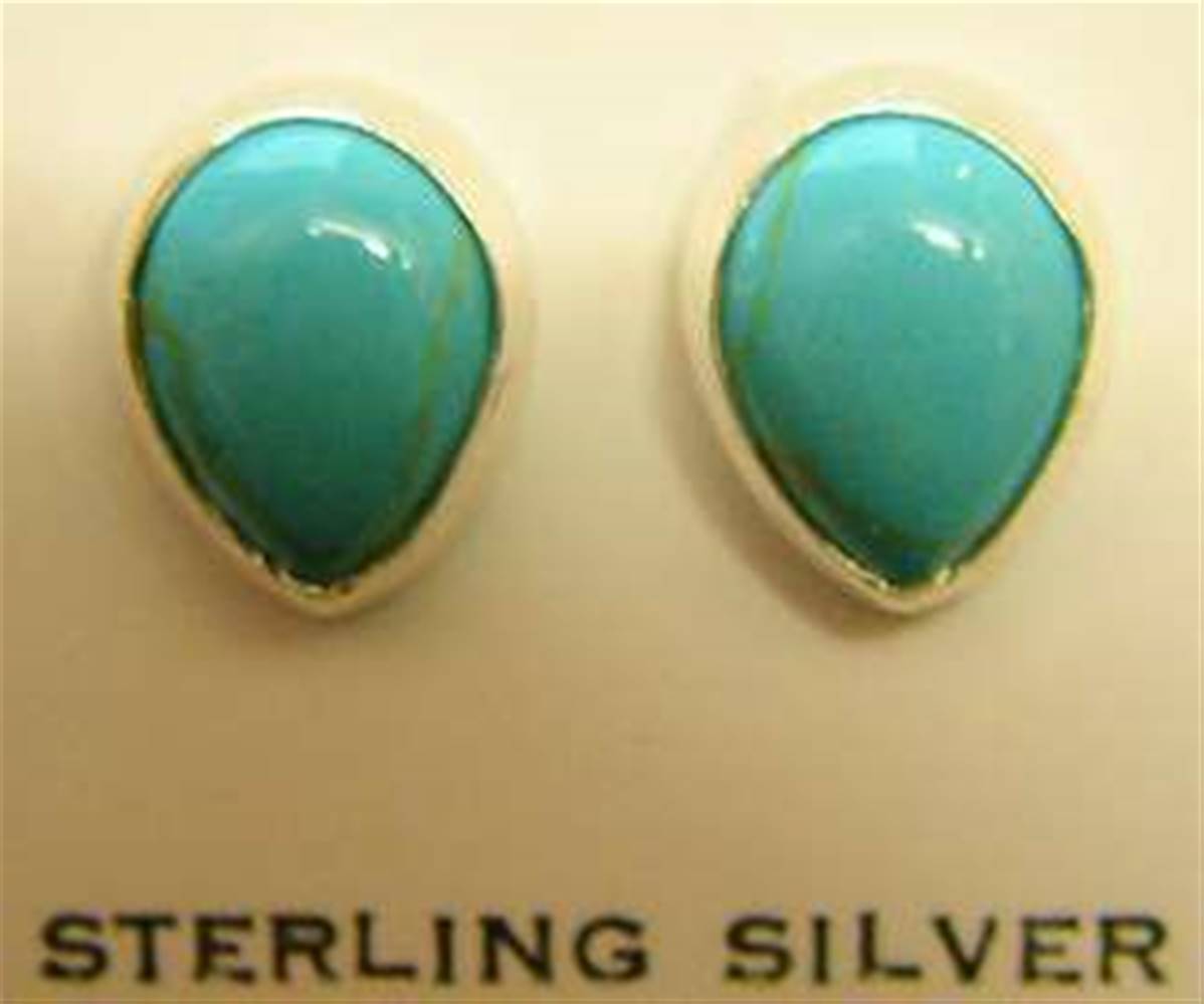 925 SILVER STUD EARRINGS FEATURING TEARDROP SHAPE CABOCHONS IN TURQUOISE.