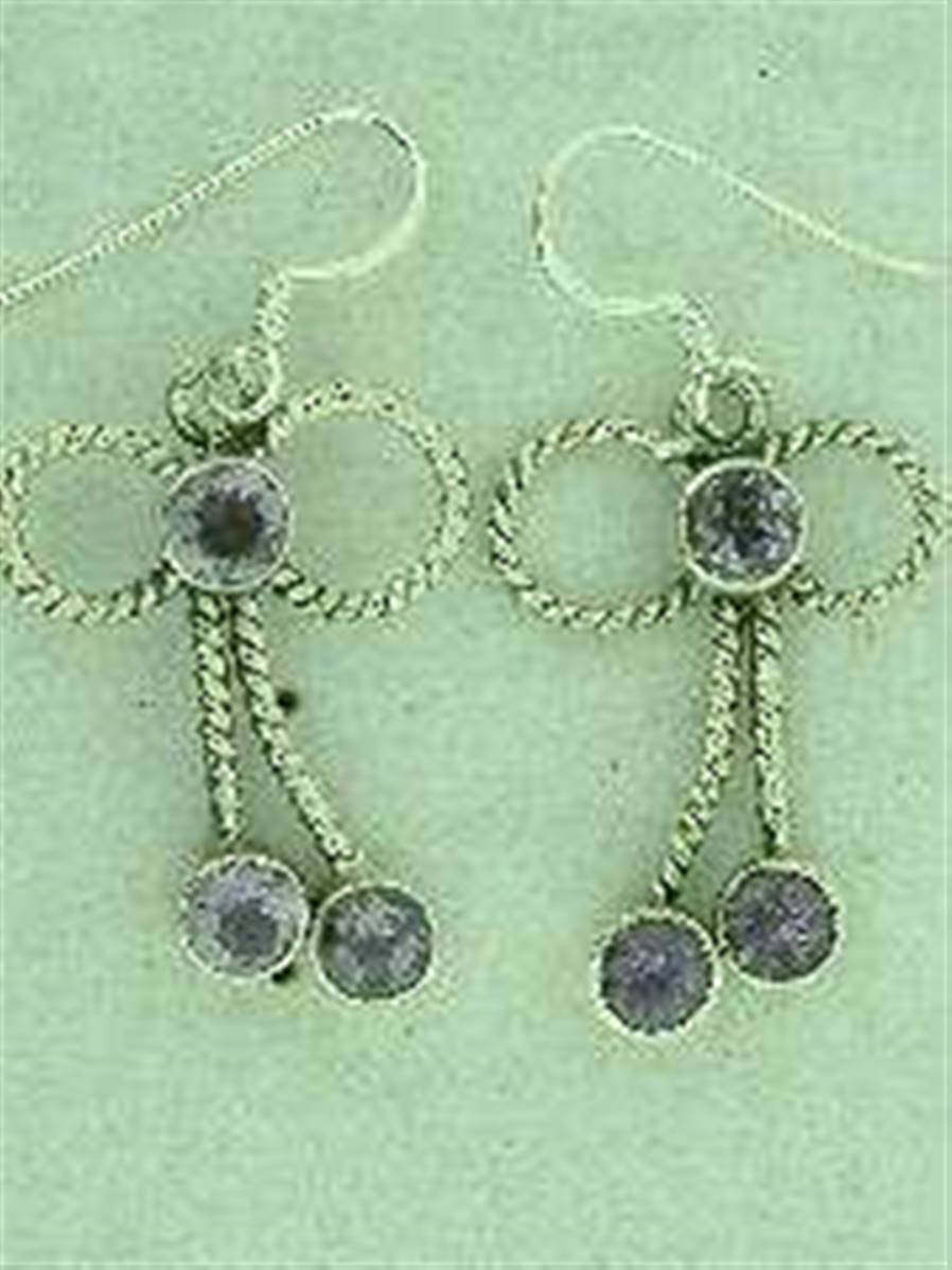 925 SILVER TIED BOW DESIGN EARRINGS FEATURING 3 FACECED AMETHYST CABS. SIZEOF CABS LARGE- 5MM DIA.