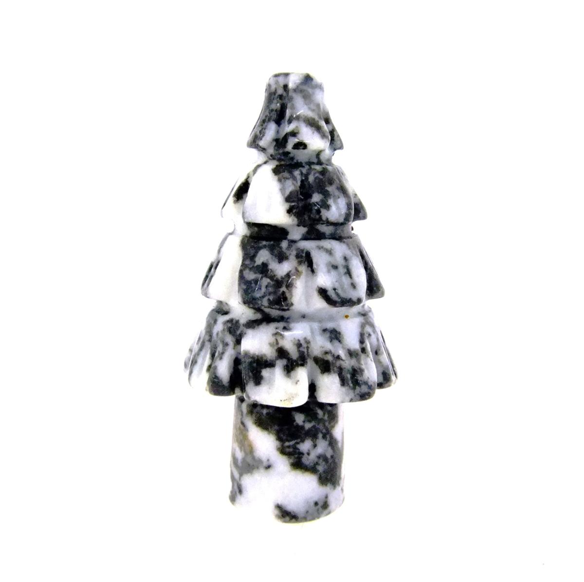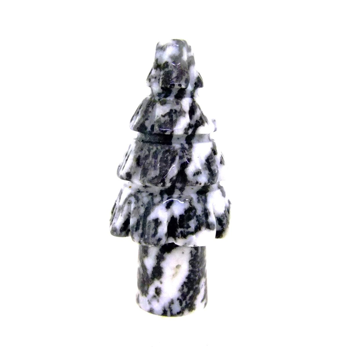 A GEMSTONE CHRISTMAS TREE CARVING IN BLACK & WHITE ZEBRA JASPER. SP12966POL