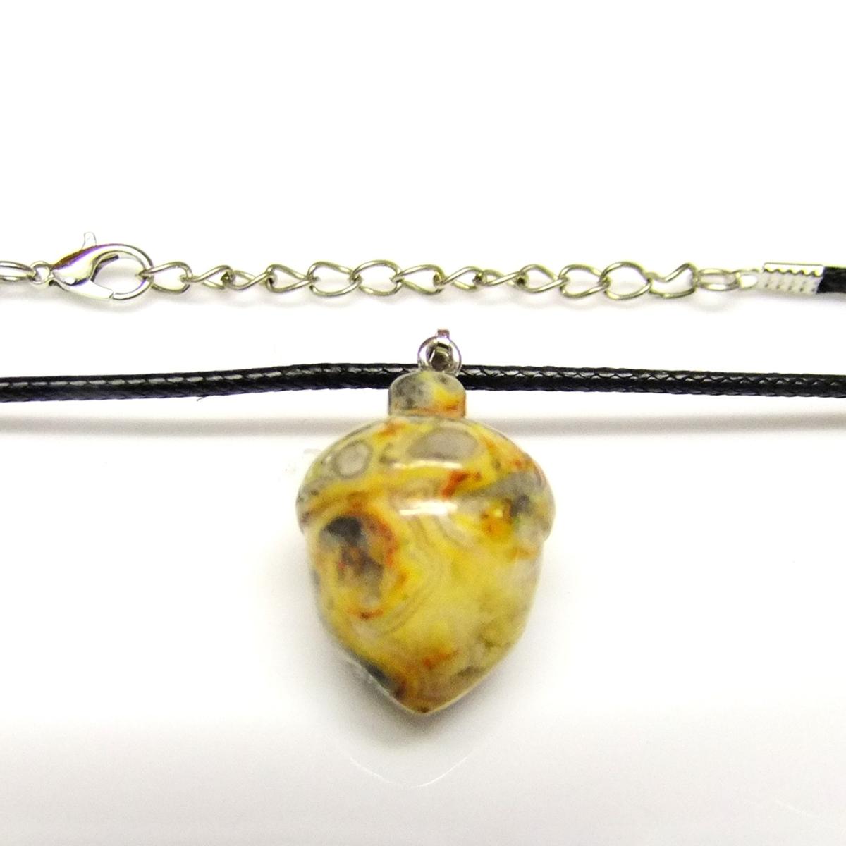 Acorn Pendant Necklace In Crazy Lace Agate.