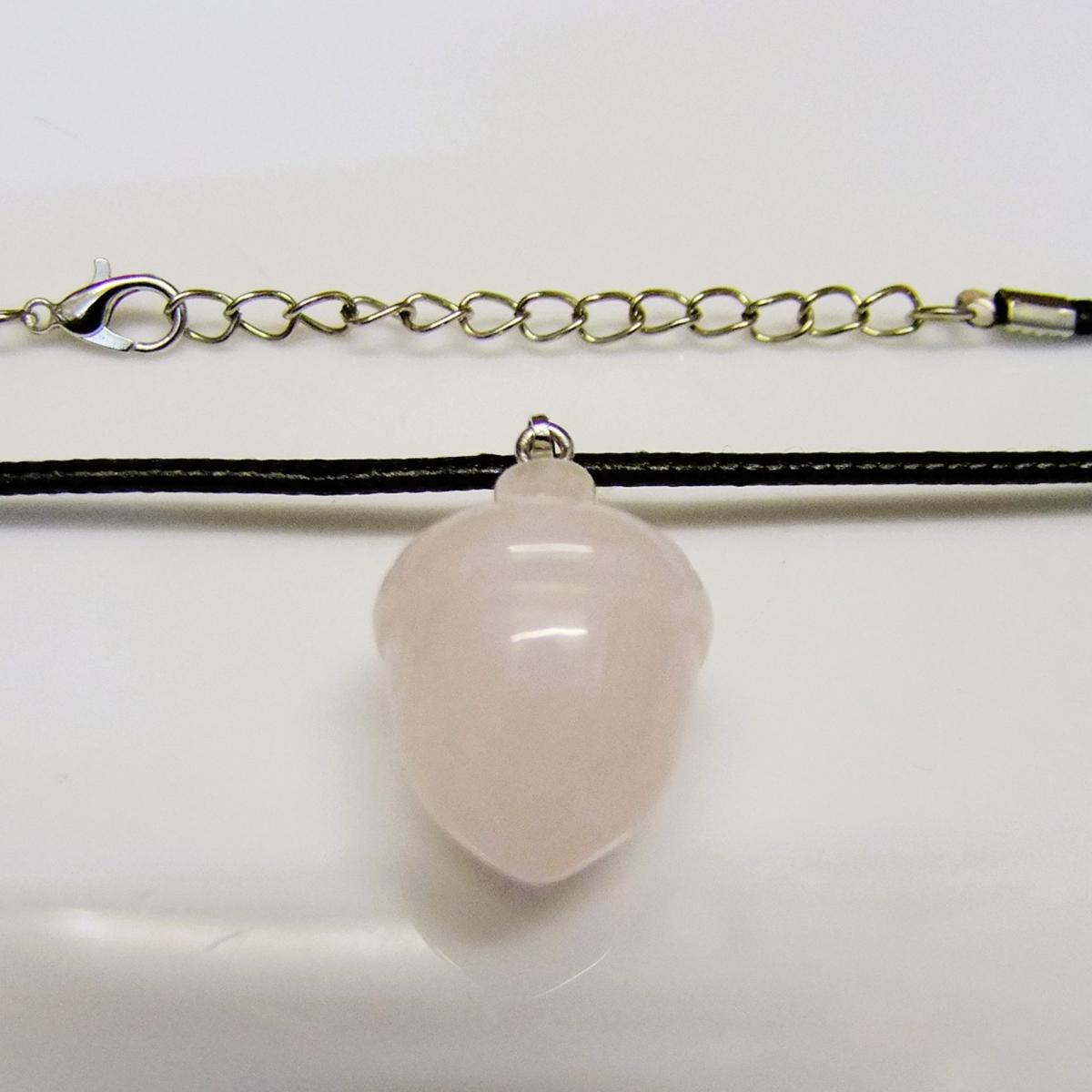 Acorn Pendant Necklace In Rose Quartz.