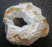 | | WITH AMETHYST DRUZE ON THE INSIDE. SIZE = 120MM X 85MM X 68MM APROX. WEIGHT = 590g. |