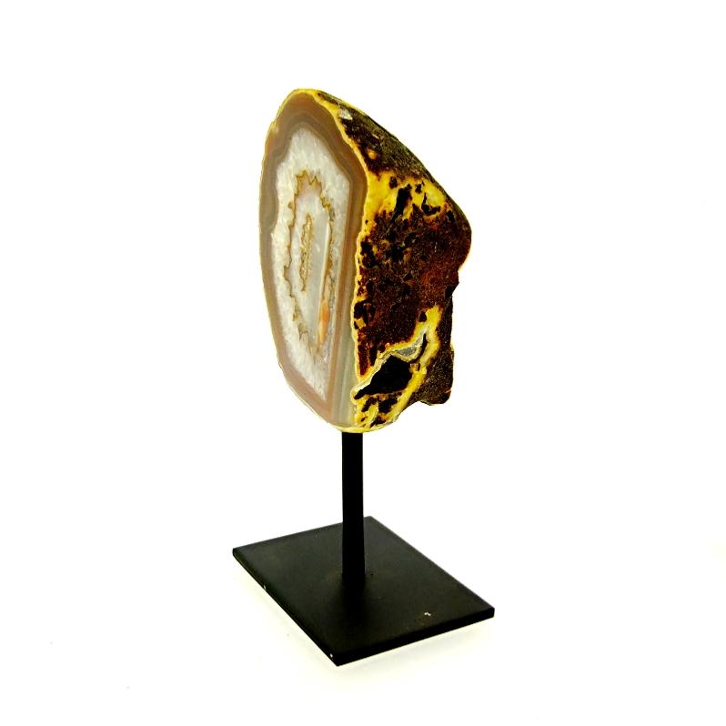 • AGATE HALF NODULE SPECIMEN ON METAL STAND.   SP14113SLF