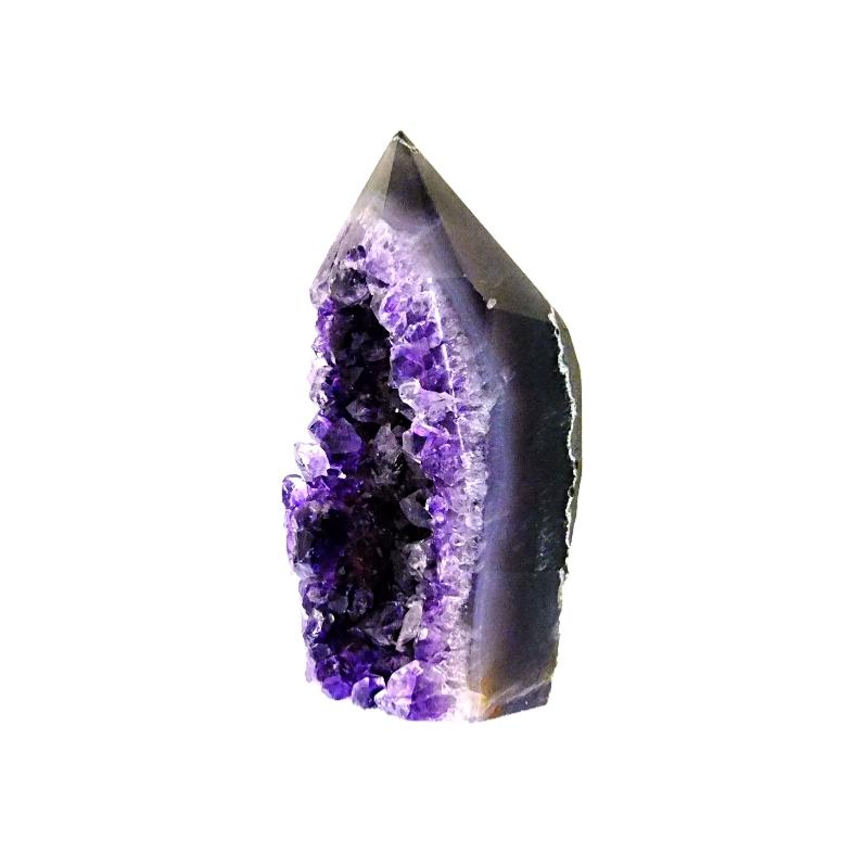 AGATE WITH AMETHYST DRUZE POLISHED POINT SPECIMEN. SP14345POL