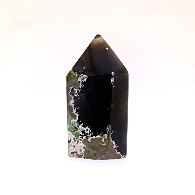 • AGATE WITH AMETHYST DRUZE POLISHED POINT SPECIMEN.   SP14345POL
