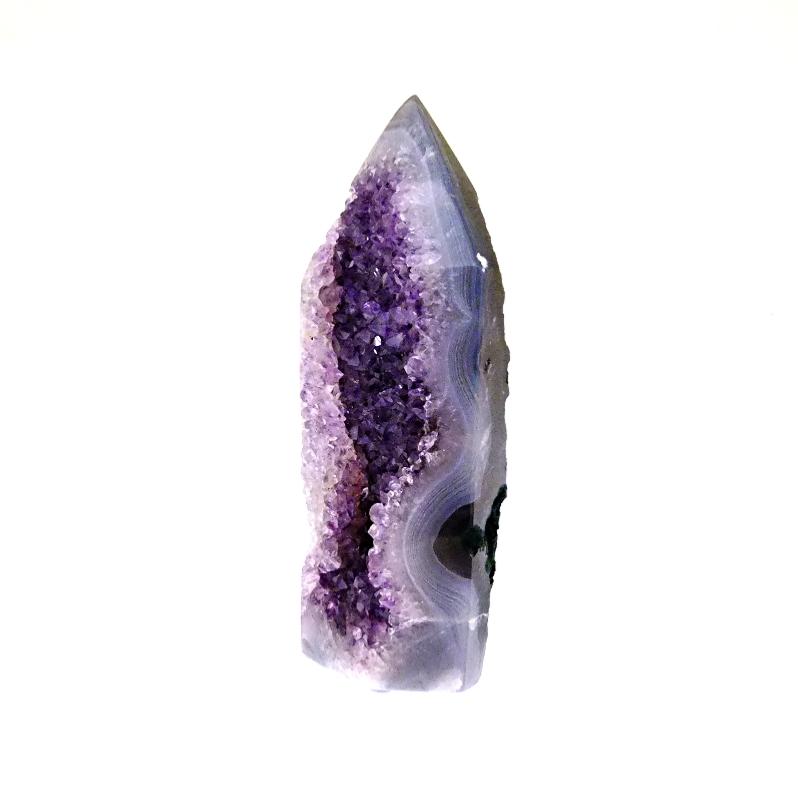 AGATE WITH AMETHYST DRUZE POLISHED POINT SPECIMEN. SP14346POL