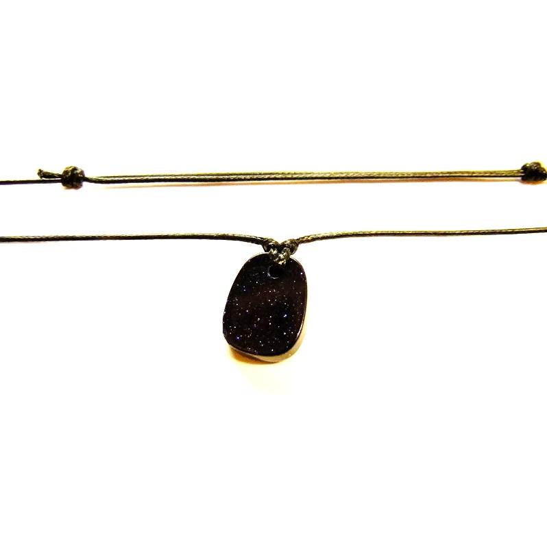 AJUSTABLE POLISHED FLAT PEBBLE NECKLACE IN BLUE GOLD STONE FEATURING DRAWSTRING CORD.