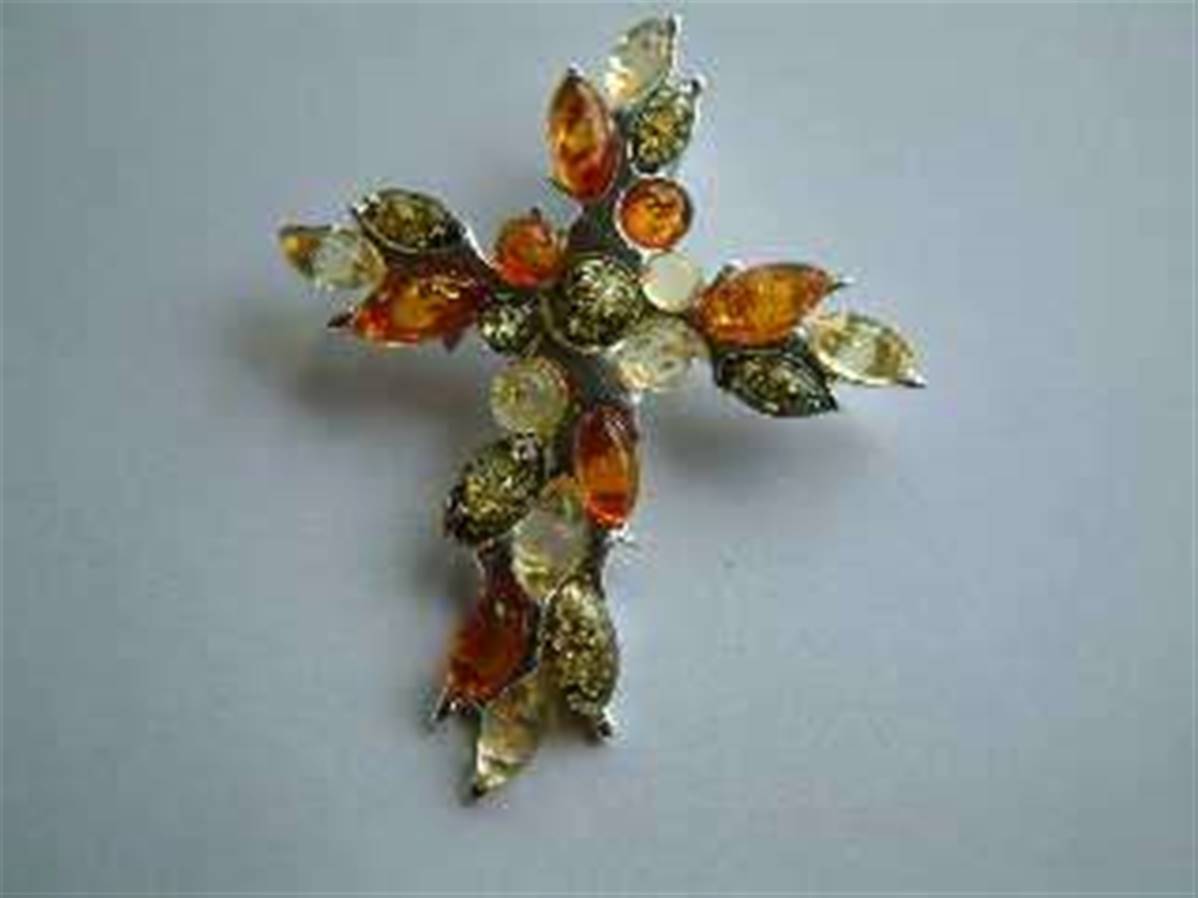 Crafted for us in Gadansk Poland from 925 silver this stunning three coloured amber cross measures appx 6cm in length and 4.5cm width,