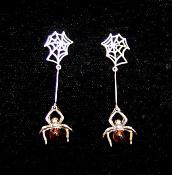 | 925 SILVER DESIGNER EARRINGS IN THE FORM OF A SPIDER HANGING FROM A THREAD OF WEB.