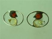| | AMBER & SILVER YIN YANG STYLE TWO TONE STUD EARRINGS. |