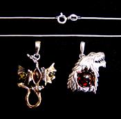 | | SET OF TWO AMBER PENDANTS WITH 925 SILVER SETTING FEATURING BALTIC AMBER IN DRAGON & WOLF DESIGN.