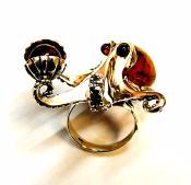 | | BALTIC AMBER WITH SILVER RING & NECKLACE SET IN THE FORM OF AN OCTOPUS HOLDING A CLAM SHELL CONTAINING AN AMBER SPHERE.