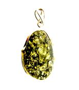 | | Crafted for us in Gadansk Poland from 925 silver this beautiful pendant is set with an oval in the very popular green amber.Not including the loop for the chain, the pendant measures almost 3.5cm in length.