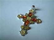 | | AMBER CROSS PENDANT SET WITH THREE COLOURS OF AMBER.