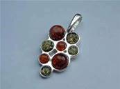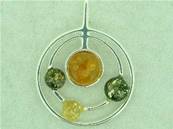 | 925 SILVER ROUND PENDANT FEATURING GOLDEN, GREEN, & YELLOW AMBER CABS. PENDANT DIA 24MM. LARGE CAB SIZE- 8MM. SMALL CAB SIZE- 4MM. |