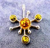 | This querky silver pendant is set with 4 circular amber cabs and is drilled through the side to take a chain (available seperately). Length of pendant appx 2.5cm