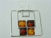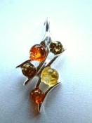 | Crafted for us in Gadansk Poland from 925 silver with yellow, gold and green Amber, this contemporary and stylish pendant measures appx 3cm.